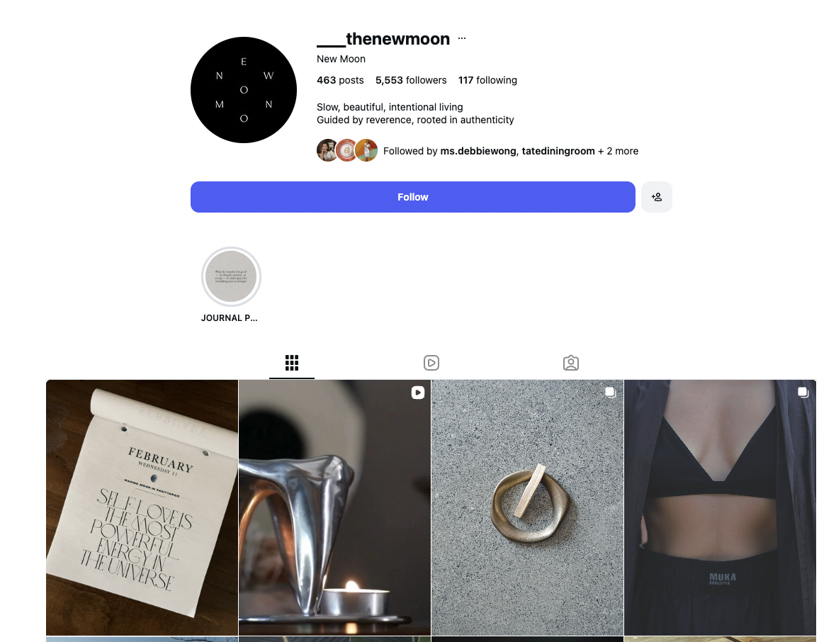 Curated Instagram copy for New Moon for one year, shaping the brand’s voice around slow, intentional living and crafting posts that resonated with a growing, engaged audience of over 5,500 followers.